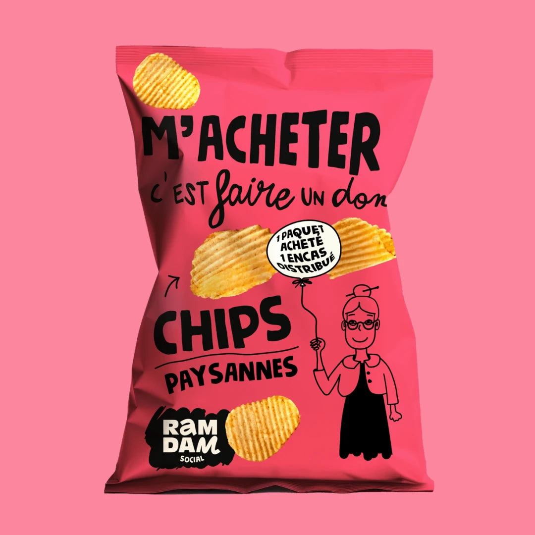 - 2 paquets de chips = 2 encas offerts à des personnes en situation de grande précarité avec l'aide du Samusocial de Paris.